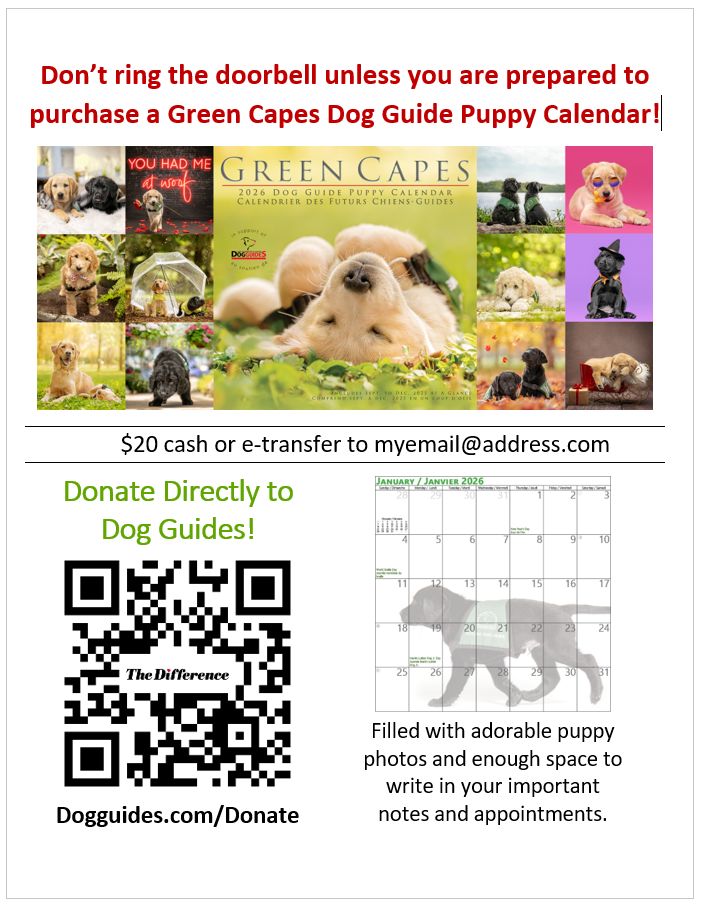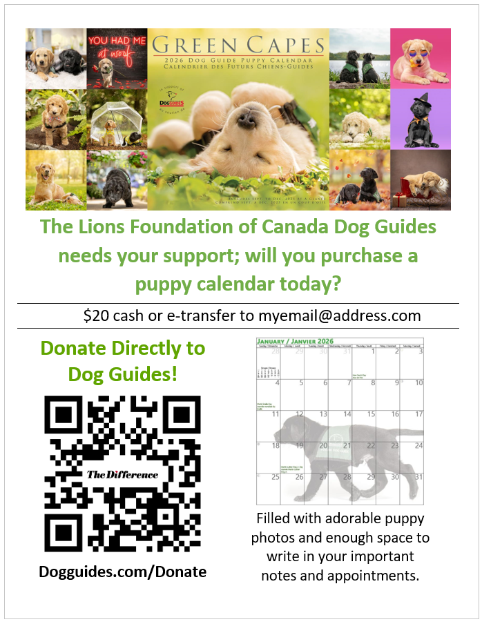 The Lions Foundation of Canada Dog Guides are approaching the public, the Provincial and Federal governments, celebrities, charitable organizations, etc. If you are able to donate or work for a company who may consider donating to this worthy cause which helps Canadians with disabilities across the country, please share the website link dogguides.com or the Fundraising page: dogguides.com/the-difference-campaign/